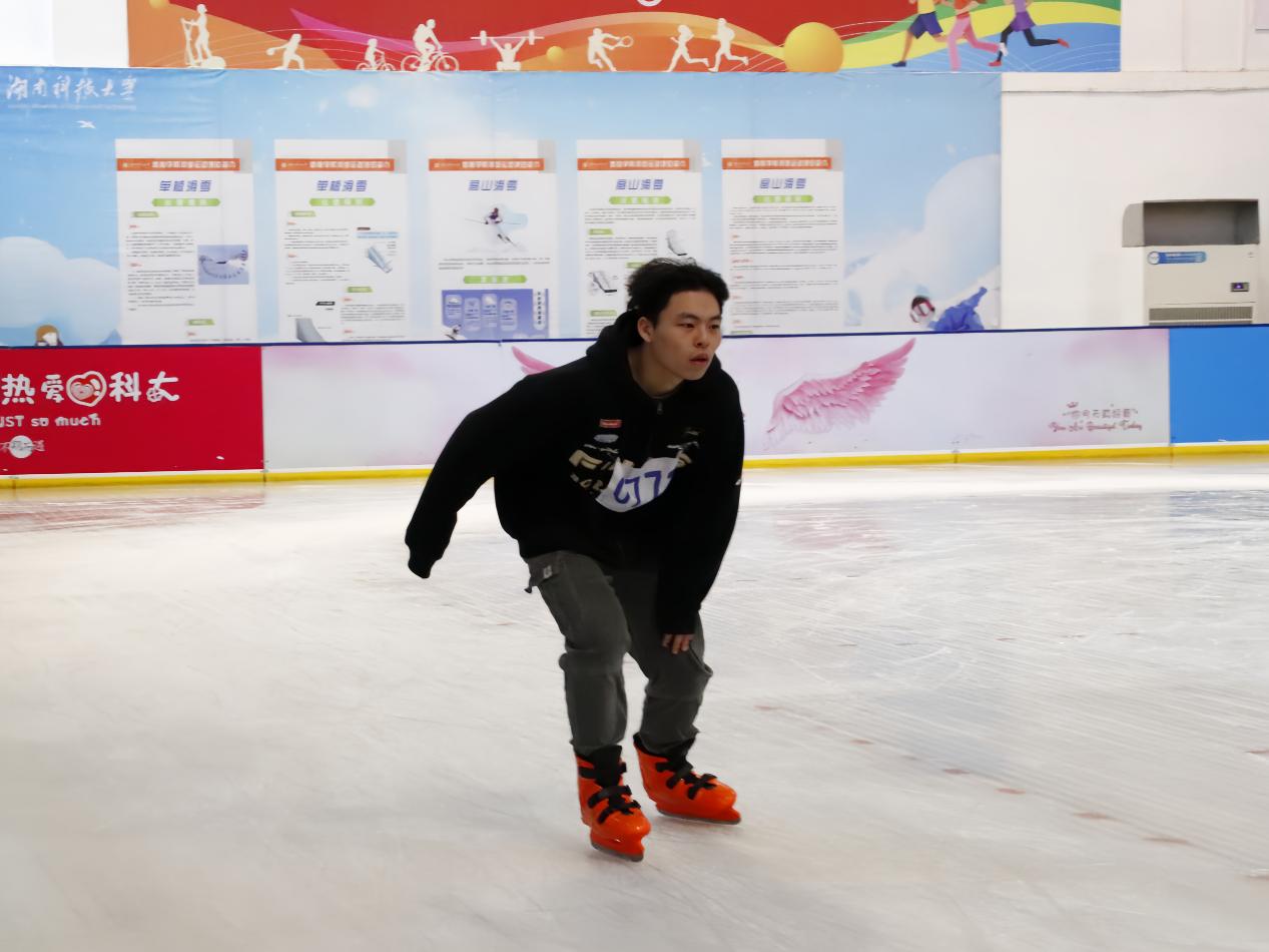 速度滑冰赛场上,我院运动员奋勇争先,脚下的冰刀在银色冰面划出一道道完美的弧线,一个个风驰电掣的身影在赛道上你追我赶、奋力拼搏,成为冰场上独具特色的风景线。
