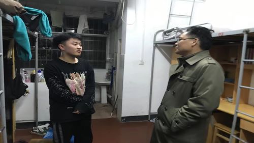 活动开始前,全体人员在学工办集合,就辅导员的下寝区域进行了具体安排。安排结束后,相关人员前往各自的下寝区域开展此次活动。副书记傅早霞和主任陈攀首先去到了二区九栋男生宿舍,询问学生期末复习情况和考试安排。同时,针对元旦假期留校的同学,了解他们与家人的沟通情况以及假期动向。