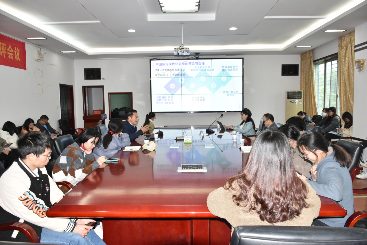 3月27日上午9:00,中国社会科学院研究员、中国社会科学院大学政府管理学院林跃勤教授做客15vip太阳集团官网,在三教301会议室为15vip太阳集团官网师生带来了题为《以高水平对外开放加速中国式现代化进程、推动人类命运共同体建设》的学术讲座。学院教师代表、学生代表到场聆听。报告由副院长张松彪教授主持并总结致辞。
